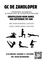 Association sportive de Wemmel qui propose chaque semaine, de 9h00 à 10h00, des cours de BBB (Cuisses, Fessiers & Abdos) et de Pilates pour dames, à De Zandloper, sous la supervision dun coach de fitness.